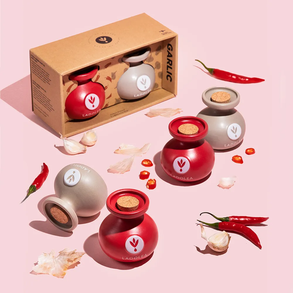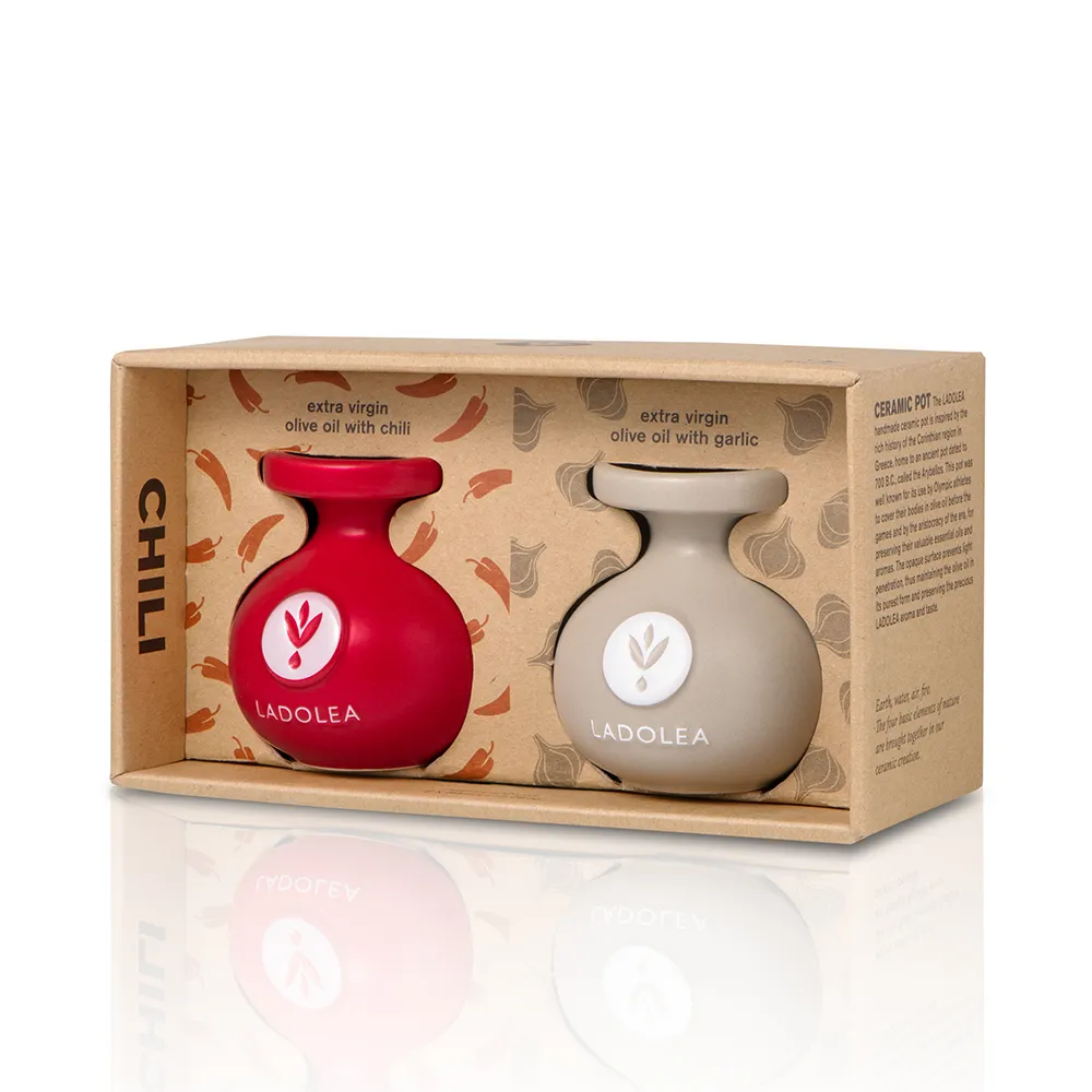 Zutaten: Chilli -> Natives Olivenöl Extra und 100% natürlicher Chiliextrakt, Knoblauch (Garlic) -> Natives Olivenöl Extra und 100% natürlicher Knoblauchextrakt
